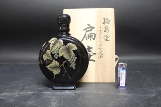 □中古品 ■輪島塗ぶどうにりす沈金扁壺 ■大雅堂謹製 角康二作 ■幅15cm 高さ23.5cm ■定価 500,000円 ■特価 55,000円 ※輪島塗り沈金の素晴らしい技法をほどこした角康二先生の名品です。 棚置物 飾り物として ※中古品ですがきれいな状態です。